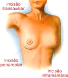 Através das incisões, local onde ficará posicionada a futura cicatriz. As mais freqüentes são: Periareolares (no entorno inferior da aréola), Inframamárias (no sulco mamário inferior) e Axilares (na axila).